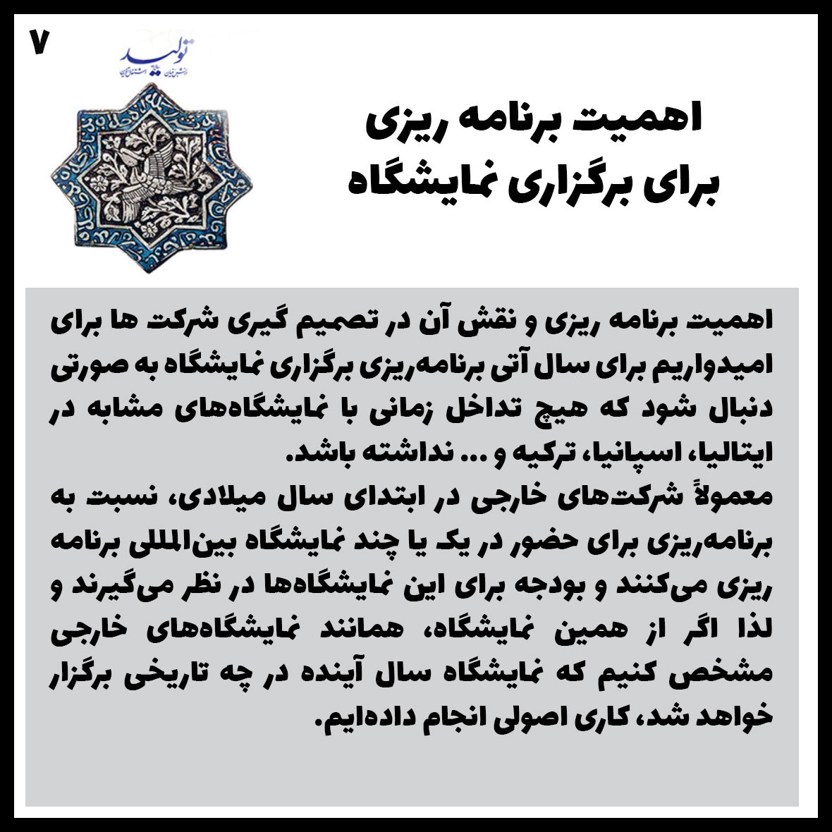 اینکه برای ما هدفگذاری از برگزاری یک نمایشگاه صرفاً رشد و ارتقا صنعت باشد و یا فقط اهداف شخصی و درآمد مالی ناشی از برگزاری نمایشگاه مد نظر باشد خود میتواند بر این تصمیمگیری تاثیرگذار باشد و منجر به ایجاد چنین معضلاتی شود.